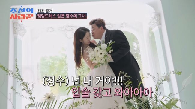 13일 방송된 '조선의 사랑꾼'에서는 '♥원진서' 윤정수가 폭우 속 웨딩 촬영 현장을 공개했다. 윤정수는 치장 중인 원진서를 기다리며 “너무 사랑스럽고 피곤하다"면서 장난스러운 투정을 부렸다. 이후 진행된 촬영에서 원진서가 긴장 속에 미소조차 잊어버리자, 윤정수는 "넌 내 거야! 입술 갖고 와!"라면서 수많은 뽀뽀와 농담으로 분위기를 풀었다. 완성된 사진 속 한껏 마중 나온 윤정수의 입술에 김국진은 "정수가...뽀뽀하는 법을 잘 모르나 보다?"라고 농담해 웃음을 자아냈다.