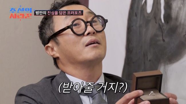 이윽고 아내가 도착하자, 김병만은 그림 설명을 하며 아내를 앞으로 불렀다. 이미 울고 있는 아내에게 김병만은 "가장 유치한 것, 그런데 가장 진심으로 한번 해보려 한다"면서 한쪽 무릎을 꿇고 일기장에 쓴 진심 어린 고백을 읽었다. 이를 VCR로 지켜본 사랑꾼 MC들도 눈시울이 붉어진 가운데, 김병만은 반지 상자를 열고 프러포즈의 대미를 장식했다. 김병만의 아내는 "결혼 전에 오빠가 '뭘 살다가 결혼하면서 그런 걸 하냐'고 해서 생각도 못 했다. 그동안의 시간을 한꺼번에 보상받는 느낌이다"라며 감동의 눈물을 흘렸다.