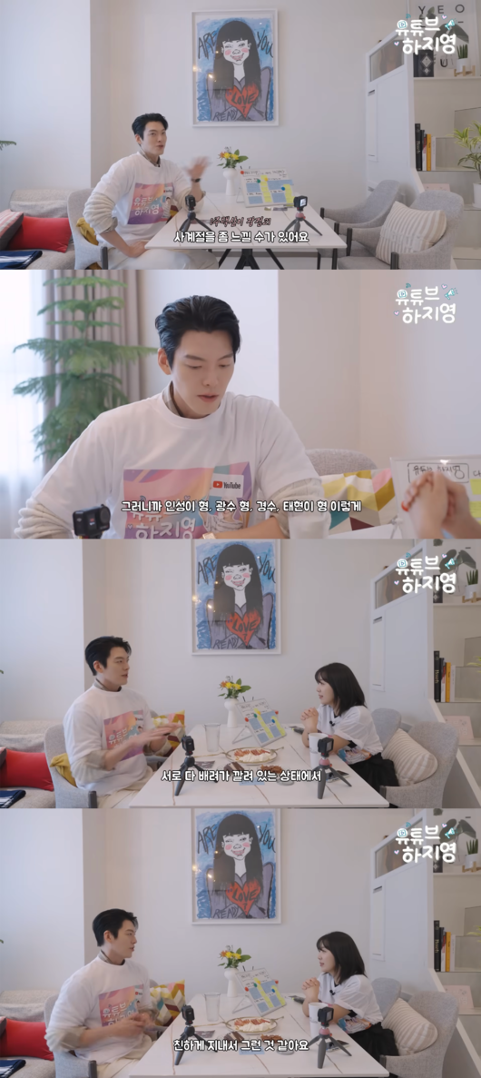 이날 김우빈은 하지영이 웰컴티를 준비하는 동안 제작진이 입고 있는 ‘유튜브하지영’ 티셔츠를 달라고 요청해 입었다. 시작한지 얼마 안된 하지영의 유튜브 채널 홍보를 위한 것.