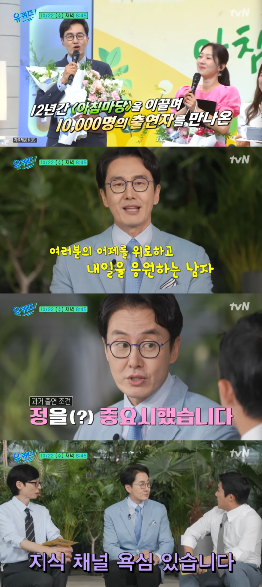 이날 ‘유퀴즈’에는 12년간 ‘아침마당’을 진행하며 1만 명이 넘는 출연자를 이끈 김재원 아나운서가 등장했다.