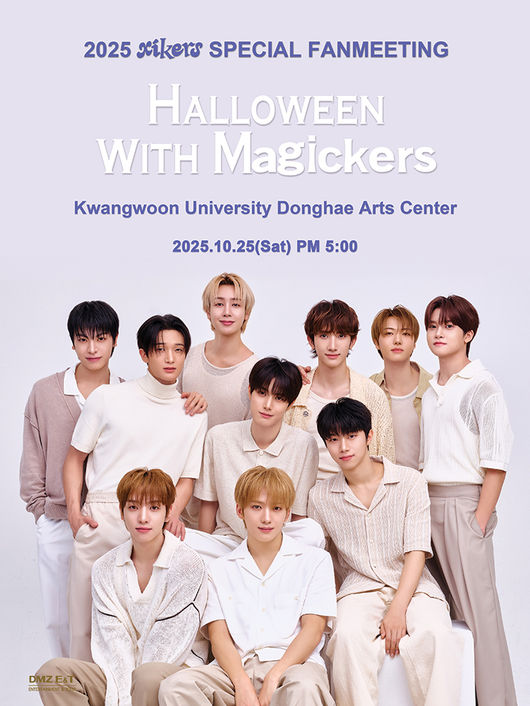싸이커스가 오는 10월 25일 오후 5시, 서울 광운대학교 동해문화예술관에서 '2025 xikers SPECIAL FANMEETING <Halloween with Magickers>'를 개최한다. 이번 팬미팅은 KQ엔터테인먼트와 디엠지이엔티가 공동 주최 및 주관한다.