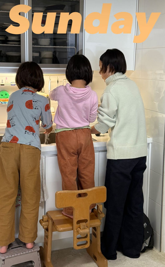 이어 김나영, 신우, 이준 세 모자는 나란히 주르륵 서서 사다리를 받쳐 올라간 채 무언가를 구경하고 있다. 요리를 함께하고 있는 것인지, 아무튼 세 사람은 끈끈한 유대가 보인다. 그리고 흐릿한 일요일 오전과 오후가 무색하게 여린 채광이 커튼을 뚫고 들어오는 김나영의 집은 그저 따뜻해 보인다. 아마도 사진을 찍고 있는 사람의 애정이 피사체에 오롯이 담겨 있을 것이다.