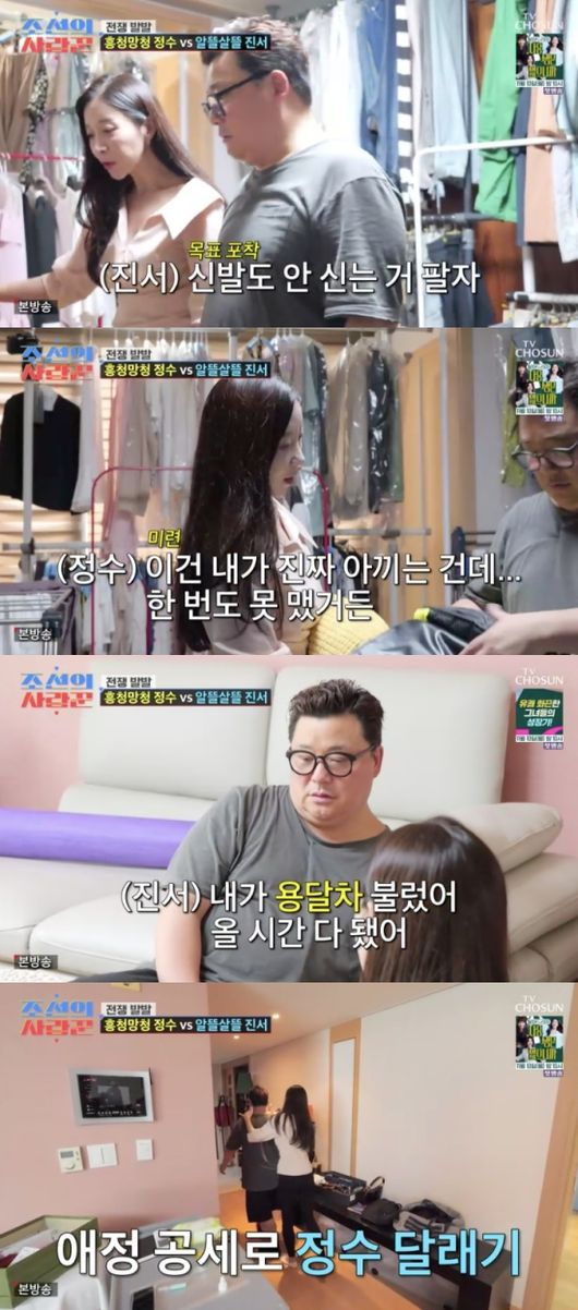 27일 방송된 TV조선 예능 ‘조선의 사랑꾼’에서는 신혼집 정리에 나선 윤정수, 원진서의 모습이 그려졌다.