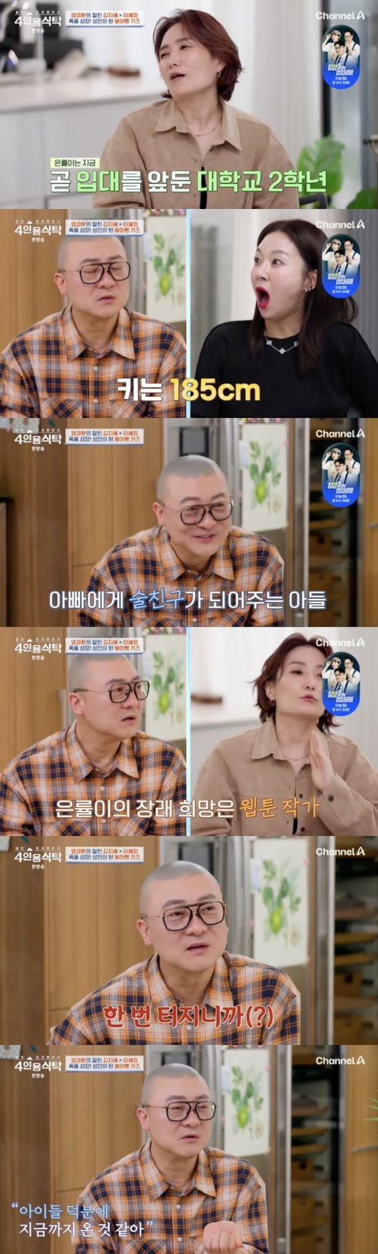 김지혜는 과거 염경환, 아들과 함께 ‘붕어빵’ 방송을 했다며 염경환의 첫째 아들 은률 군을 언급했다. 염경환은 “내년 초에 군대 간다. 키는 185cm다. 저만큼 크다”라고 말했다. 지금은 술도 나눠마실 정도로 훌쩍 컸다고.