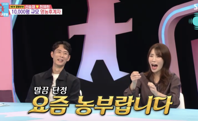 아내 천혜린은 “아버지가 전남 보성에서 3만 평 규모의 쌀농사를 짓고 있다”며 역시 범상치 않은 ‘농가 DNA’를 자랑했다.