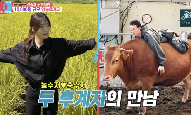 이날 주인공은 충북 괴산의 ‘핫스타’로 불리는 영농 2세 부부 신승재(27)·천혜린(28). 두 사람은 각각 축산과 벼농사 가문 출신, 이른바 ‘축수저·농수저 부부’로 눈길을 끌었다.