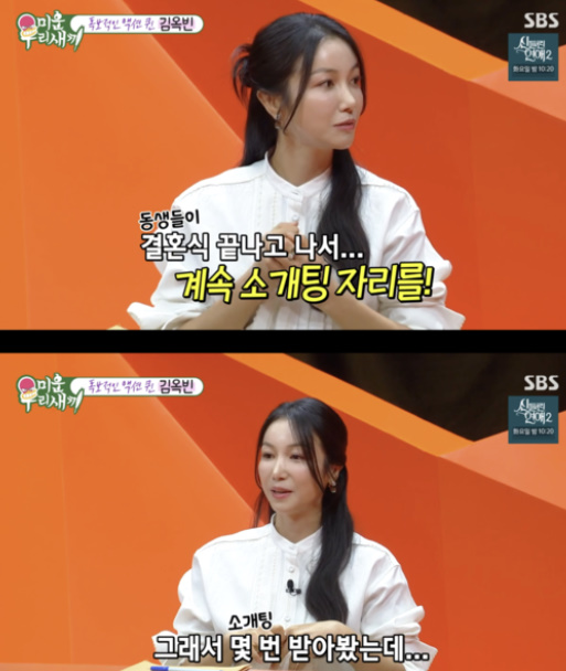 올해 3월 SBS ‘미운 우리 새끼’에 출연한 김옥빈은 “두 동생이 먼저 결혼해서 우울했다”며학비·용돈·졸업식까지 책임지던 ‘맏딸 역할’을 털어놓은 바. 동생들에게 “내 신랑감을 찾아오라”고 농담처럼 말했지만,6개월 만에 실제 결혼 소식을 알리자 팬들은 놀라움과 함께 축하를 보내고 있다.