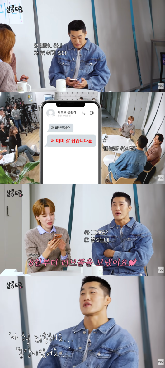 직접 확인한 장도연은 “8월부터 러브콜을 보냈다. 처음에는 이분도 예의를 갖췄다. 답장이 없으니까 이틀 후에 ‘스파링 꼭 해보고 싶습니다’, 이틀 후에 ‘부탁드려용’, 또 이틀 후에 ‘형 스파링 해주세용’ 그리고 3시간 전에 온 게 ‘저 파브르예요. 매미 잘 잡습니다’다”라고 설명했다.
