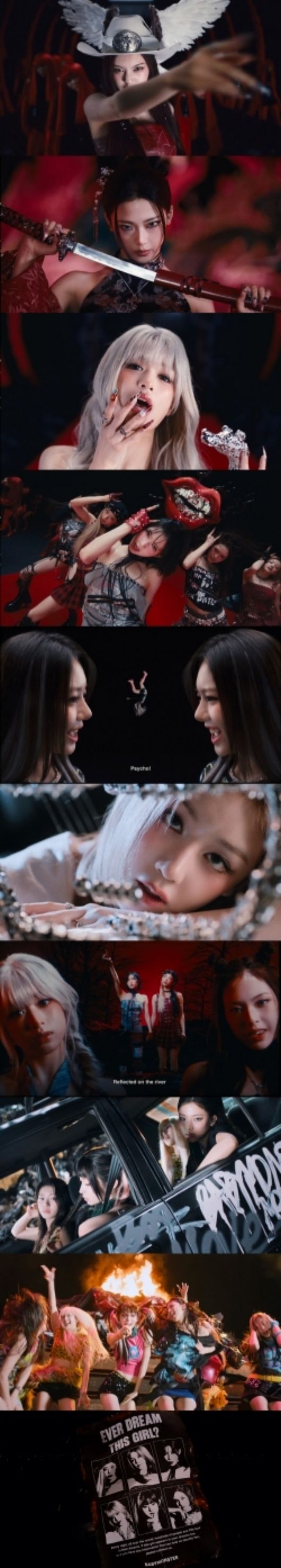 19일 공개된 미니 2집 'WE GO UP'의 수록곡 'PSYCHO' 뮤직비디오는 타이틀곡 'WE GO UP'과는 또 다른 컨셉츄얼한 분위기로 완성됐다. 베이비몬스터의 변화무쌍한 스타일링부터 꿈과 현실을 넘나드는 몽환적인 연출, 미스터리한 스토리가 극강의 몰입감을 선사한 것.