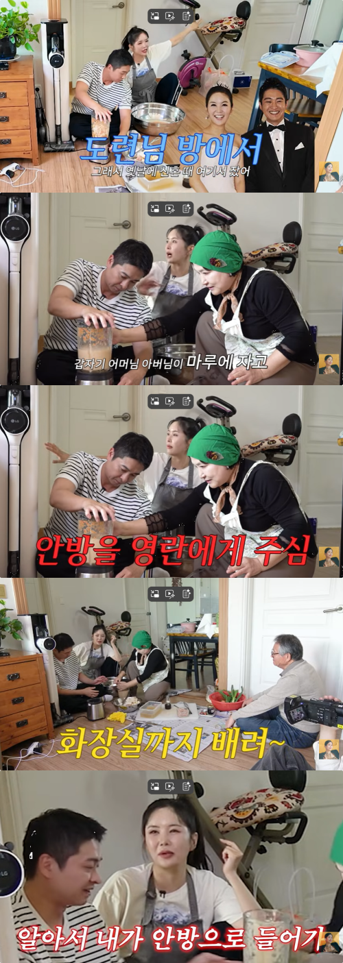 김장 중 에피소드를 전한 장영란은 시부모님의 파격적인 배려에 감사를 표했다. 장영란은 신혼 때는 도련님 방에서 잤지만, 어느 순간 시부모님들이 자신들의 안방을 내어주셨다고 밝혔다.