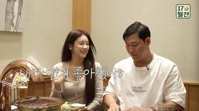 이날 게스트로 나온 노시환은 “모 유튜브에서 두 분의 연애 기간이 5년이었다고 얘기가 나왔는데, 처음 만났던 순간이 기억에 나는지?”라고 물었고, 하주석은 “처음 만났을 때부터 지금까지의 기간은 5년인데, 2번 정도? 헤어져서 각자의 길을 갔다”고 밝혔다.