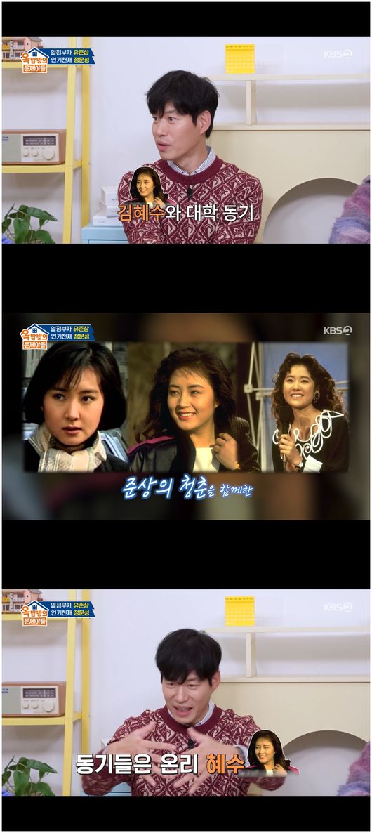 한편 유준상은 김혜수와 같은 학교 출신이었다. 유준상은 “제가 학교를 늦게 들어가서 김헤수랑 동문, 채시라, 고현정은 선배들이다”라며 “저는 동기 사랑, 나라 사랑이어서 제 동기들은 다 김혜수만 둘러싸고 다녔다”라고 말했다. 유준상은 “물론 그 당시에도 채시라, 고현정, 김혜수 모두 인기가 많았지만 우리 동기들만큼은 김혜수가 최고다, 이렇게 했다. 김혜수 씨도 여전히 고마워한다"라며 끈끈한 동기애를 전했다./osen_jin0310@osen.co.kr