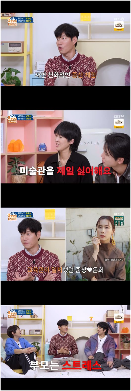 유준상은 “애들 어릴 때 미술관을 그렇게 데리고 갔는데 미술관을 그렇게 싫어한다. 등산이며 자연 교육도 그렇게 해 주려고 했는데, 이젠 등산을 거부한다. 아들들이 ‘아빠, 우리 할 만큼 했잖아’라고 하더라”라며 훌쩍 커버린 아들들에 대해 전했다.