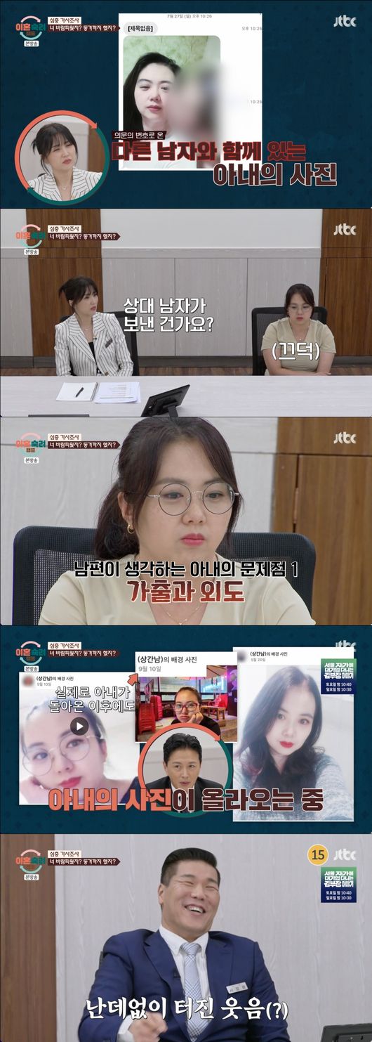 더욱 경악스러운 것은, 아내가 집을 나간 사이 다른 남자와 뽀뽀하는 사진이 의문의 번호로 남편에게 도착했다는 것이다. 아내는 이 사진을 상간남이 보낸 것이 맞다고 시인했다.