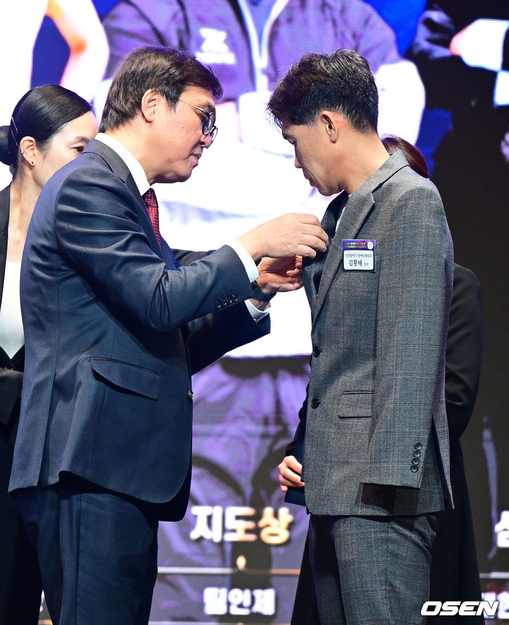 대한민국체육상 장애인경기상 김황태 선수가 최휘영 문화체육관광부 장관에게 포상을 받고 있다. 2025.11.21 / dreamer@osen.co.kr