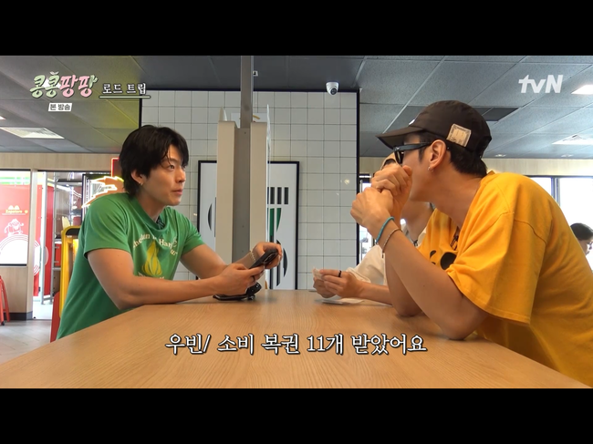 탐방비가 바닥난 상황에서 삼인방은 어쩔 수 없이 맥도날드에 들러 식사를 해결했다. 주문을 기다리던 중 김우빈은 휴대폰을 확인하며 “어, 형, 소비쿠폰 11개 받았어요!”라며 흥분했다. 이어 “32원짜리도 있다”고 덧붙이며, 소액이지만 뜻밖의 행운에 즐거워하는 모습을 보였다. 이를 지켜보던 이광수는 “봐, 베풀면 또!”라며 기뻐했다.