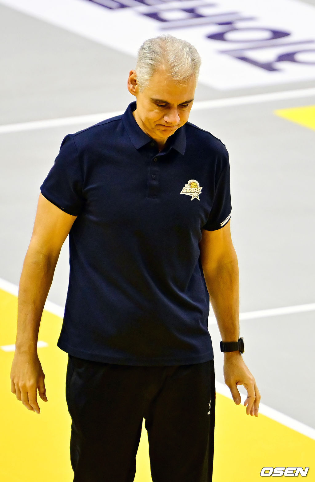 4세트 KB손해보험 레오나르도 감독이 고개를 떨구고 있다. 2025.11.22 / rumi@osen.co.kr