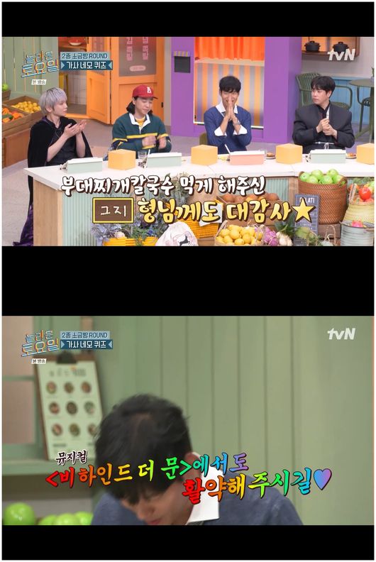 이후 이홍기는 난도 높은 문제에서 단어 하나를 잡아냈고, 유준상도 뒤를 이어 답변을 제안해 이들은 성공적으로 받쓰 음식이었던 부대찌개칼국수를 먹을 수 있었다.