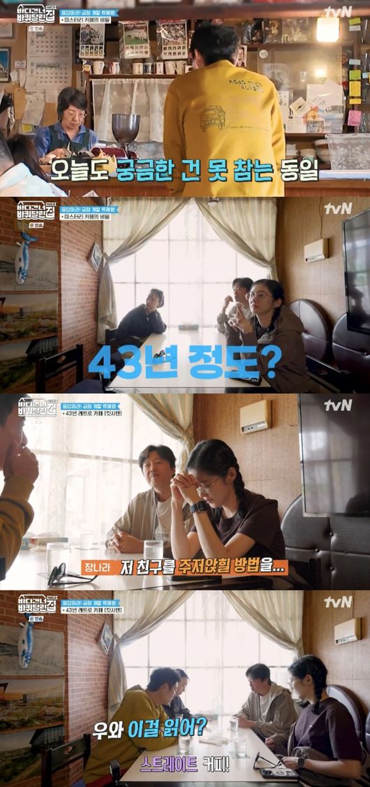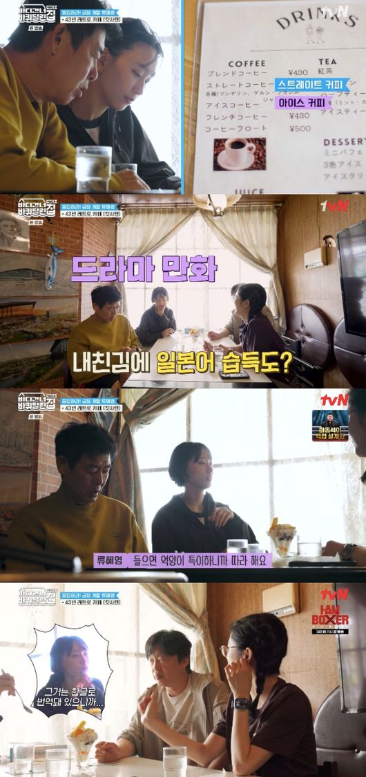류혜영은 “킷사텐이라고 옛날 다방을 일본어라고 하는데 요새는 젊은이들이 옛날 레트로 감성을 좋아해서 투어도 하고 찾아 다닌다”라고 설명했다. 이를 들은 성동일은 “뭘 찾아 다니냐 우리처럼 우연히 들어와야지”라고 했고, 류혜영은 “맞다”며 거들었다.