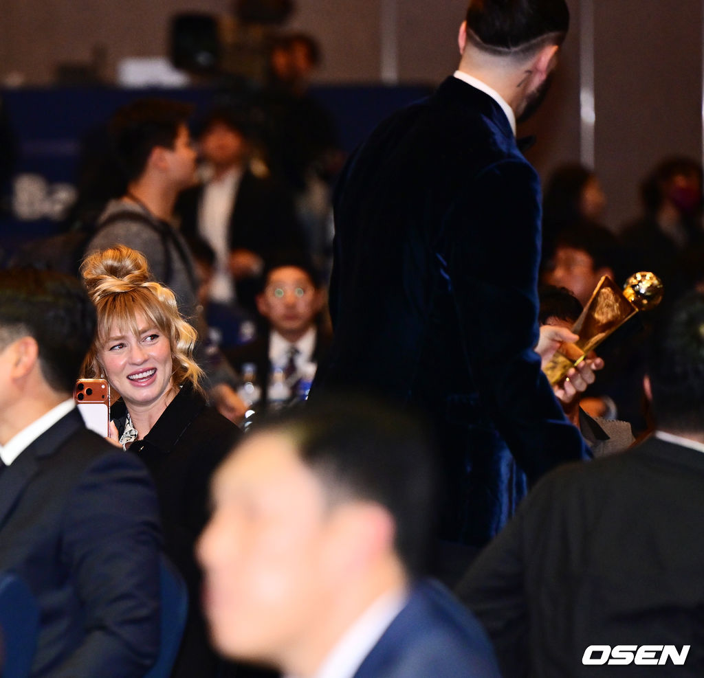 MVP를 수상한 한화 폰세가 아내의 축하를 받고 있다. 2025.11.24 /jpnews@osen.co.kr