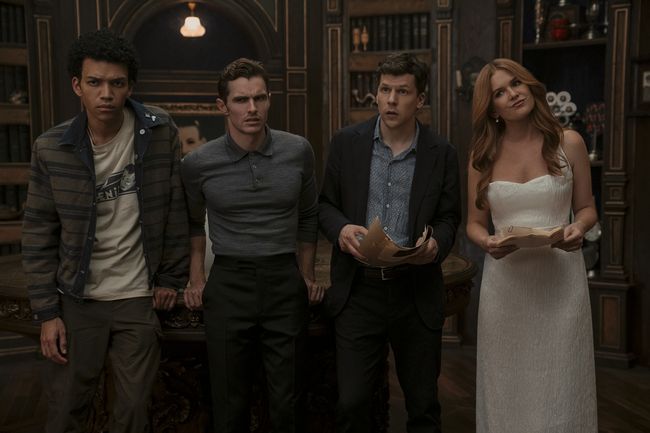 블록버스터 '나우 유 씨 미 3'(감독: 루벤 플레셔 | 출연: 제시 아이젠버그, 우디 해럴슨, 데이브 프랭코, 아일라 피셔, 저스티스 스미스, 도미닉 세사, 아리아나 그랜블랫, 로저먼드 파이크, 모건 프리먼 외 | 수입: 롯데엔터테인먼트 | 배급: 롯데엔터테인먼트, (주)바이포엠스튜디오)가 흥행 기념, 촬영 현장을 리얼하게 담아 낸 비하인드 스틸을 공개했다.