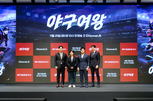 25일 오후 서울 구로구 더세인트 신도림 그랜드볼룸홀에서 채널A 신규 예능 ‘야구여왕’ 제작발표회가 진행됐다. 오늘(25일) 첫 방송되는 ‘야구여왕’은 각기 다른 스포츠 종목의 ‘레전드 여성 선출’들이 ‘야구’라는 낯선 무대에 도전장을 내미는 스포츠 버라이어티 프로그램이다.