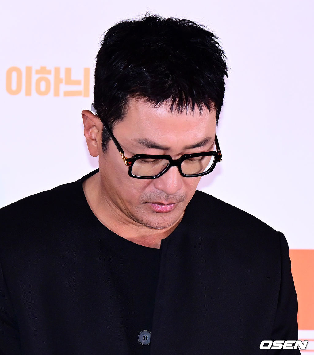 배우 이순재의 별세 소식이 전해진 가운데 배우 하정우가 묵념의 시간을 갖고 있다. 2025.11.25 /jpnews@osen.co.kr
