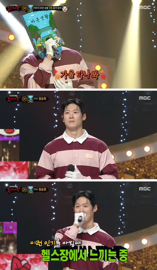 지난 23일 방송된 ‘복면가왕’에서 정승원은 ‘어린이 바른 생활’ 가면을 쓰고 캐주얼한 럭비 티셔츠를 입고 무대에 올랐다.