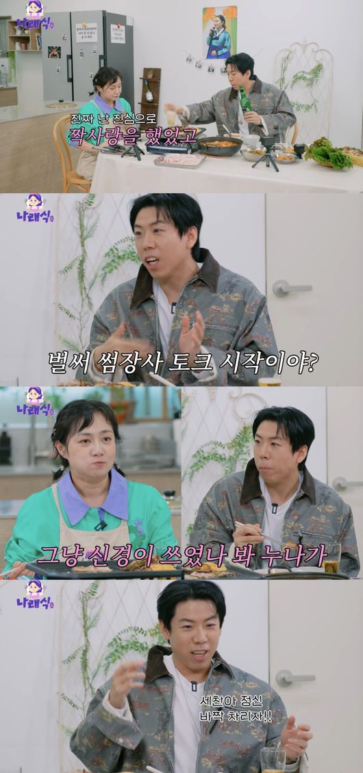 이날 박나래는 “너는 약간 그런 느낌이다. 썸장사도 하고 썸장사 이전에는 진심으로 짝사랑 했었고”라며 양세찬과 ‘썸장사’ 시절을 떠올렸다.
