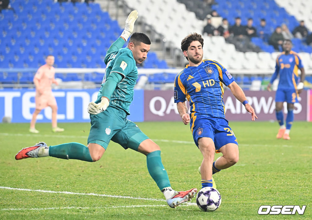 울산 HD 라카바가 부리람 유나이티드 FC 에더리지 골키퍼에게 패스된 공을 압박하고 있다. 2025.11.26 / foto0307@osen.co.kr