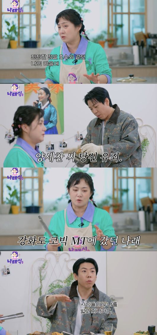 이날 양세찬은 박나래와 제작진을 챙기는 섬세한 면모를 드러냈다. 제작진은 “왜 (나래 언니가) 좋아했는지 알겠다”라고 했고, 박나래는 “이런 무심한 행동들이 잔잔한 정말 호수와 같던 나의 마음에 본인도 모르게 큰 바윗덩어리를 던졌다. 이건 유죄다. 이렇게 본다”라고 거들었다.