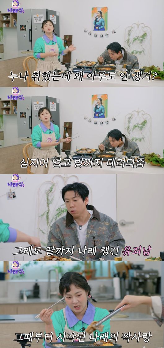 양세찬은 “그러면 머리채 잡고 질질 끌고 가? 말이 안된다. 용진이 형이 업으라고 해서 업었다”라고 설명했고, 박나래는 "그때부터 좋아하게 됐다"라며 짝사랑 시절을 떠올렸다.