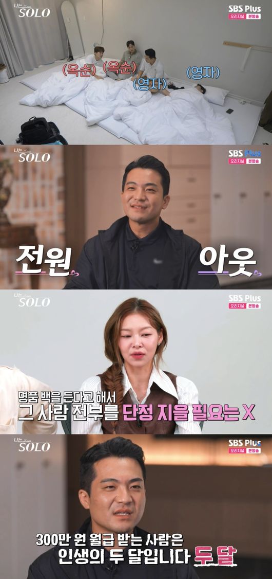 또 영철은 “(명품백이) 얼마인지 모르겠다. 300만원 월급 받는 사람은 인생의 두 달이다. 두 달”이라고 못 박았다. 그러면서 그는 “겉치레가 중요하다고 생각을 안해서 영자님이 온 자리니까 그 사람한테 집중해야 했던 상황에 명품 이야기하길래 ‘하아 모르겠다’ 이렇게 생각했다”라고 털어놨다.