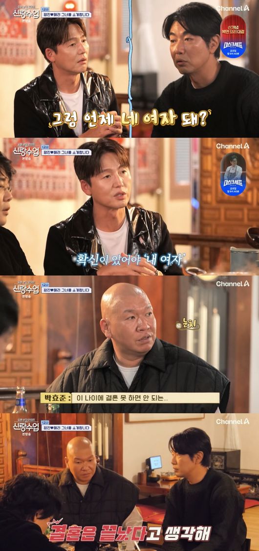 그러자 박효준은 “많이 만나서 까다로움이 높나”라며 “지금 이 나이에 결혼을 못하면 저는 안 되는 거라고 생각한다”라고 밝혔다. 이종혁 역시 “정진이를 좋아하는 여자가 나타나지 않는 이상 결혼은 끝났다고 생각한다”라고 냉정하게 말했다.
