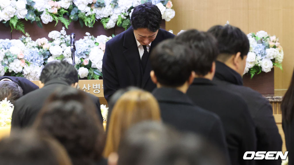 배우 정일우가 영결식에 참석해 눈물을 흘리고 있다. 2025.11.27/cej@osen.co.kr