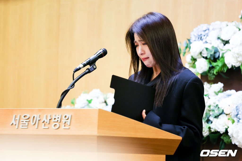 배우 하지원이 영결식에서 추도사를 하고 있다. 2025.11.27/cej@osen.co.kr