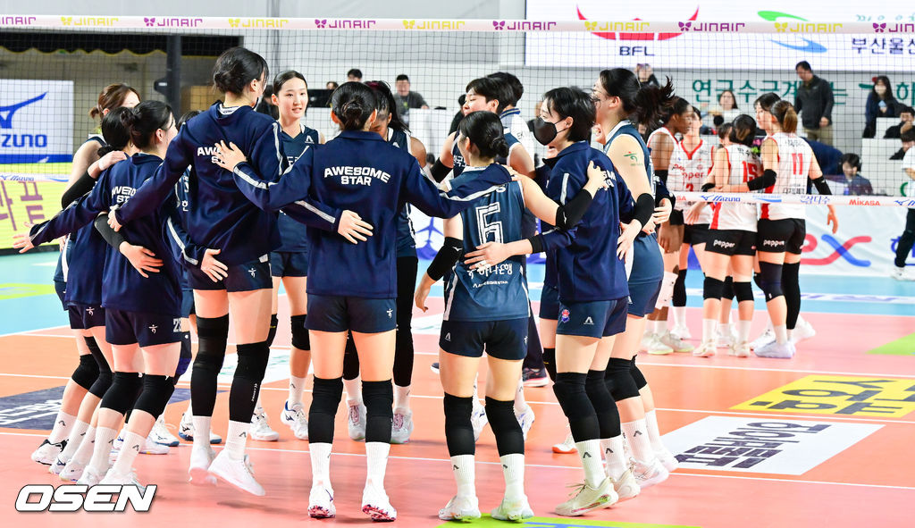 경기종료후 한국도로공사 선수들이 기뻐하고 있다. 2025.11.27 / soul1014@osen.co.kr