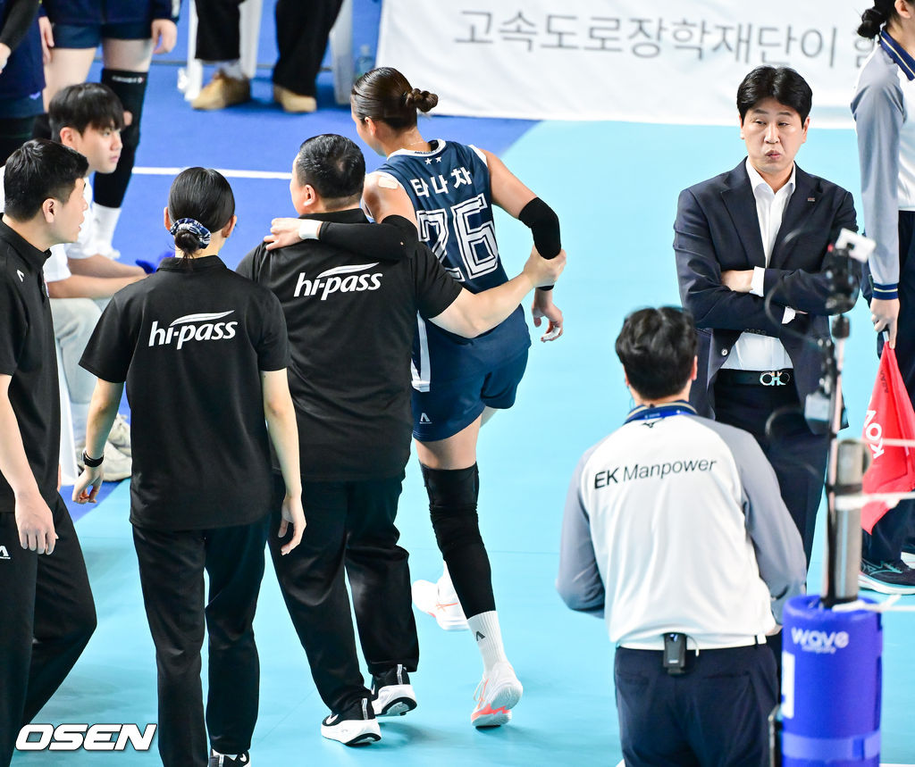 1세트 한국도로공사 타나차가 착지과정서 부상 당한뒤 교체아웃되고 있다. 2025.11.27 / soul1014@osen.co.kr