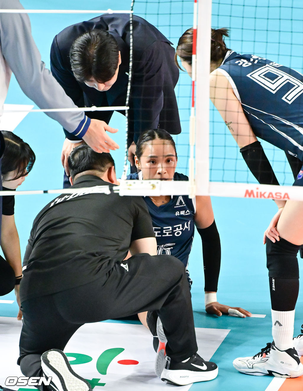 1세트 한국도로공사 타나차가 착지과정서 부상 당한뒤 쓰러져 있다. 2025.11.27 / soul1014@osen.co.kr