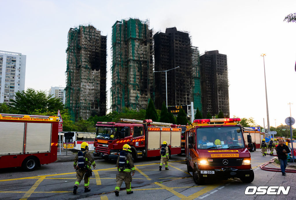 사진은 28일 홍콩 북부 타이포 구역의 웡 푹 코트(Wang Fuk Court) 아파트 화재 현장. 2025.11.28 /jpnews@osen.co.kr