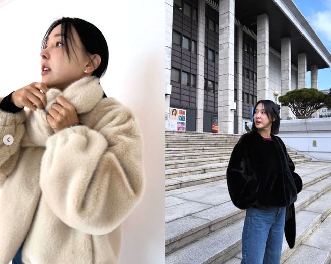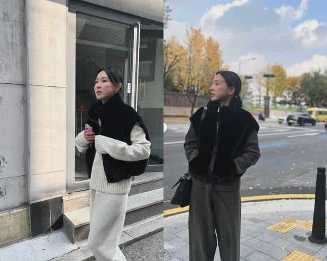 목까지 올라오는 아이보리 퍼 재킷을 여미는 모습부터, 흑색 퍼 재킷에 데님을 매치해 포근한 분위기를 연출한 모습까지 담겼다. 또 다른 사진에서는 니트 세트업에 검은 퍼 베스트를 걸쳐 완연한 겨울 스타일링을 선보였다.