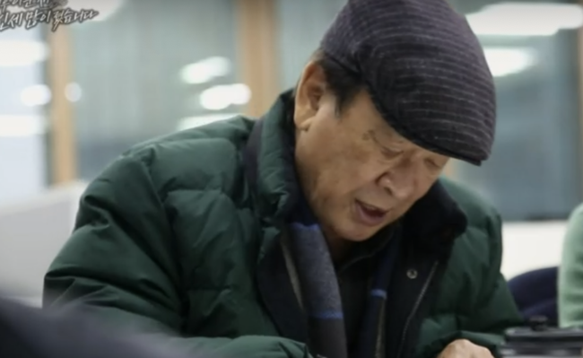 그의 마지막 드라마는 KBS2 ‘개소리’. 노구의 몸으로 서울과 거제도를 오가며 촬영하는 강행군 속에서도그는 단 한 번도 힘든 기색을 보이지 않았다고 한다. 하지만 다큐에서 처음으로 밝혀진 사실은 충격적이었다. 소속사 대표 이승희는 말했다.“선생님… 두 눈이 100% 보이는 상태가 아니셨다.”는 것. 시력이 급격히 떨어졌음에도, 그는“안 보이니까 더 연습해야 한다”며대본을 더 크게 읽어달라고 하고, 들은 대사를 모두 암기하려 애썼다.이승희 대표는 “그게 가장 가슴 아픈 부분이었다”고 울먹였다.