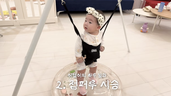 사위 원혁 역시 쏘서에서 힘차게 점프하는 이엘의 모습을 보며 “점프의 퀄리티가 달라졌다. 다리 근육이 엄청 발달했다”고 놀라움을 드러냈다. 이엘은 우렁찬 성량으로 옹알이를 이어가며 가족들의 흐뭇한 미소를 자아냈다.