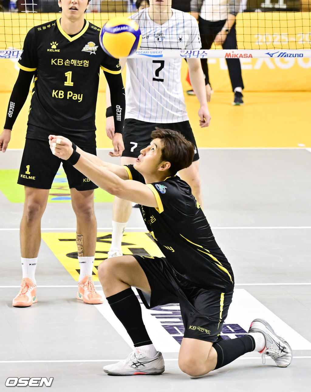 KB손해보험이 29일 의정부 경민대 실내체육관에서 열린 진에어 2025~2026 V-리그 남자부 현대캐피탈전에서 세트 스코어 3-2(25-21, 25-23, 26-28, 19-25, 18-16)로 극적인 승리를 거두며 홈에서 강한 면모를 다시 한 번 보여줬다.
