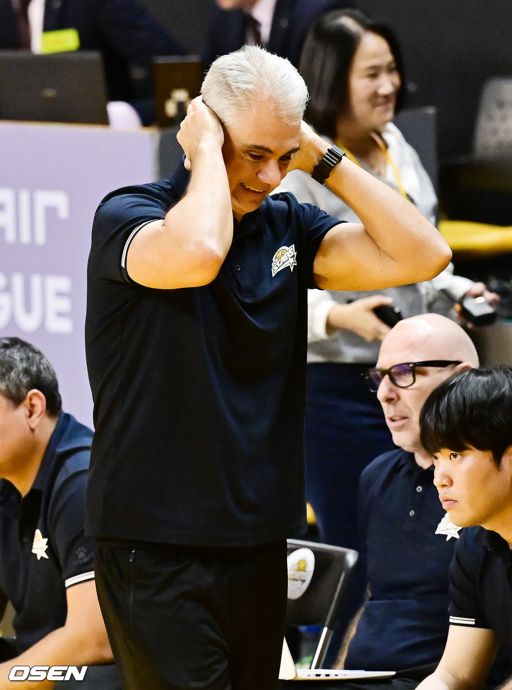 5세트 동점 허용한 KB손해보험 레오나르도 감독이 얼굴을 감싸며 괴로워하고 있다. 2025.11.29 / soul1014@osen.co.kr
