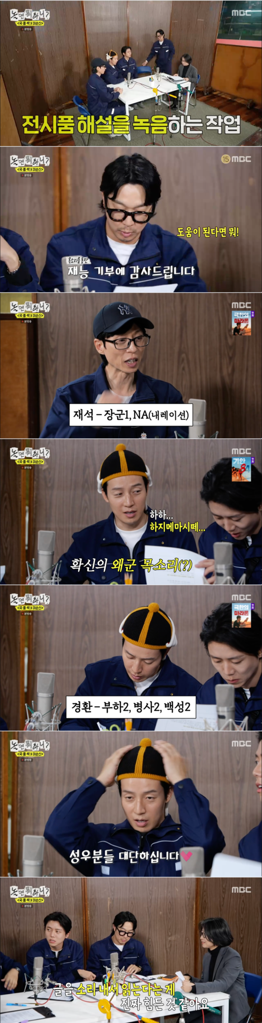'놀면 뭐하니?’ 멤버들이 국립중앙박물관의 '이순신 특별전' 오디오 가이드 녹음에 참여하는 모습이 그려졌다.