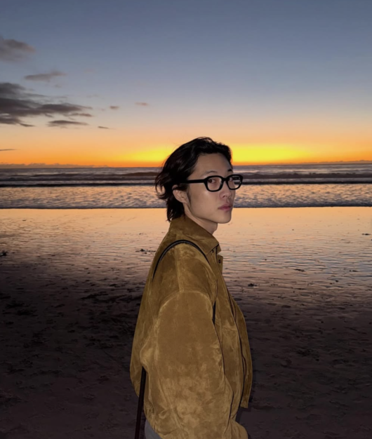 사진 속 이종원은 주황빛 노을이 수평선을 물들이는 해변에서 조용히 서 있는 모습. 자연광이 부드럽게 닿은 실루엣과 중간 길이의 헤어스타일, 두꺼운 블랙 프레임 안경이 차분한 인상을 더했다. 카멜 톤 스웨이드 재킷과 간단한 이너를 매치한 편안한 스타일링도 눈길을 끈다.