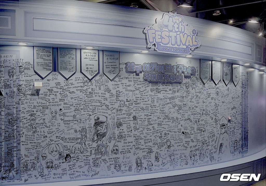 30일 오전 입장을 기다리는 유저들이 포토월을 응원 메시지로 빼곡하게 메웠다. 이번 ‘블루 아카이브 4주년 페스티벌’은 국내 단일 서브컬처 게임 중 역대 최대 규모인 총 1만 4000명 규모로 10분 만에 매진하면서 유저들의 뜨거운 관심을 확인시켰다. / scrapper@osen.co.kr