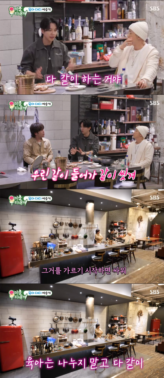 이승기는 아내와 함께하는 육아 철학도 공개했다. 그는 육아 담당을 나누는 것에 대해 “딱 자를 수 없어. 다 같이 하는 거야. 우린 같이 들어가. 같이 씻겨”라고 강조했다.