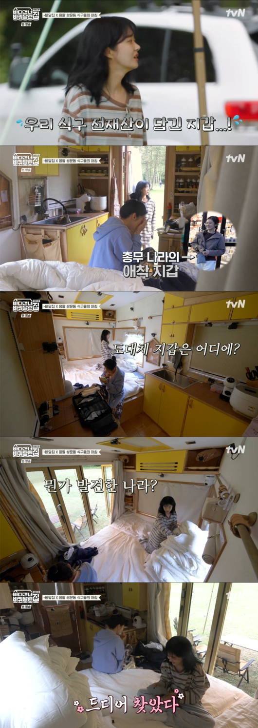 '바다 건너 바퀴 달린 집 : 북해도 편’ 장나라가 캠핑 다음 날 아침, 지갑을 찾지 못하고 멘붕에 빠지는 허당미를 보여줬다.